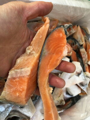 銀鮭 カマ(無塩)1kg チリ産【期間限定スポット品】不揃い・安い【冷凍便】