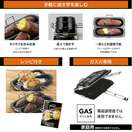 LiVE ホクホク焼き芋プレート LCYP-11 / 焼き芋鍋 焼いも フライパン グリルパン 焼いもメーカー レシピ付き ほくほく 安納芋 鳴門金時 ガス火専用 家庭用 簡単 調理 アルミ製 本格派 おいしい 焼いも器 やきいも