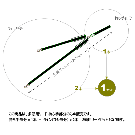 ワンタッチバックル RS-S-Line 多頭用持ち手のみ (ショックレスパッド付)合計体重40kg以内用 2頭用 リード 2頭引き